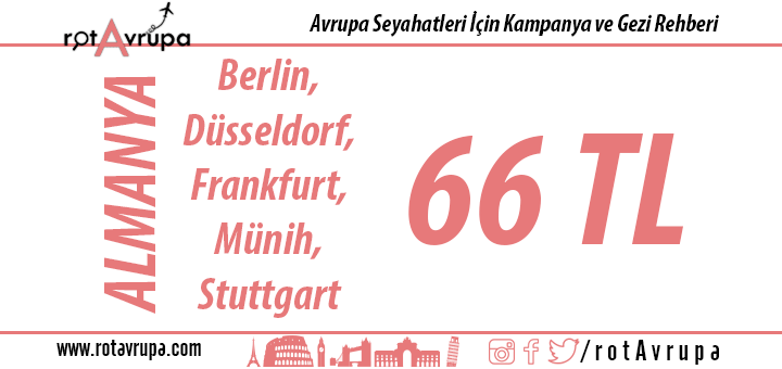 Daha neler çıkabilir kampanyadan diye araştırırken Almanya'nın birçok kentine de 66 TL'ye bilet alınabileceğini bulduk. Uçuşlar Onurair ile olduğundan indirim kuponu geçerli oluyor. Uçuşlar daha çok kasım ayı içerisinde olsa da Ekim ayında da birçok ucuz bilet bulmak mümkün. Yine Aerobilet'in web sitesi üzerinden bulabilirsiniz.