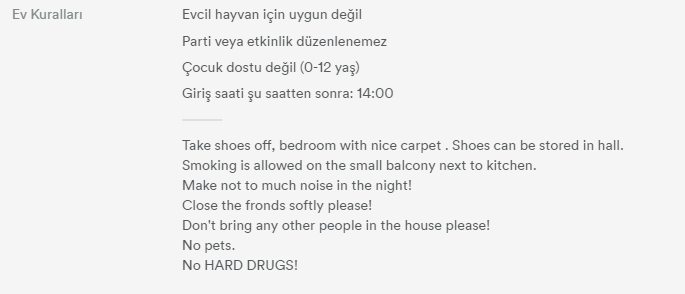 Ev sahibinin verdiği tüm kuralları mutlaka okuyun. Mesela geç girişe izin verilmeyen bir ev ise bu size sorun yaşatabilecektir