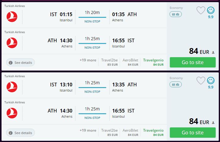 Uçak bileti gidiş-geliş toplamda 84 Euro