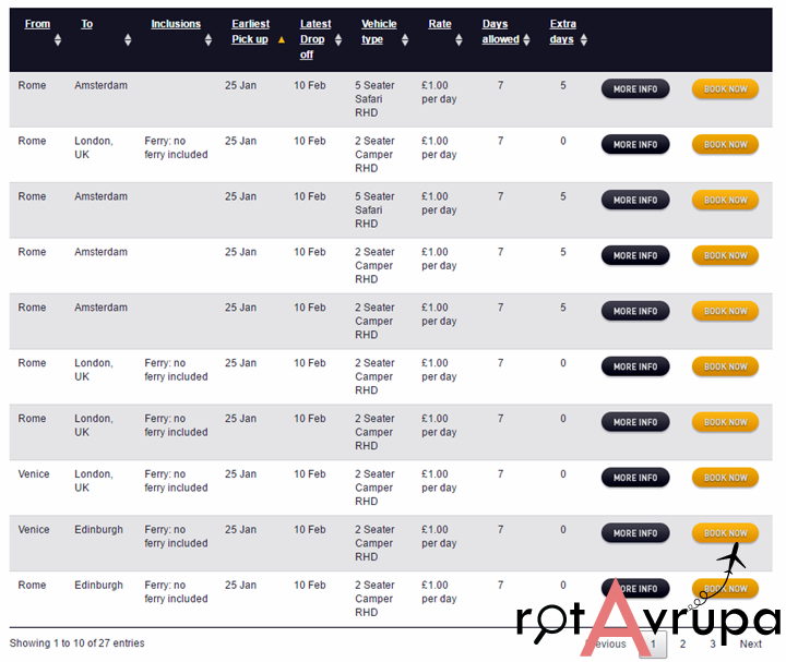 Karavanı Roma'dan teslim almalıyım. Bu karavanı en erken 25 Ocak tarihinde teslim alıp ve maksimum 12 gün kullanarak, günlüğüne 1 Pound olmak üzere toplam 12 Pound (yaklaşık 50 TL ediyor!!!) Amsterdam'a bırakmalıyım.Eğer seyahat planlıyorsanız kesinlike Seyahatte Faydalı Bilgiler kategorisindeki yazılara bakmalısınız.
