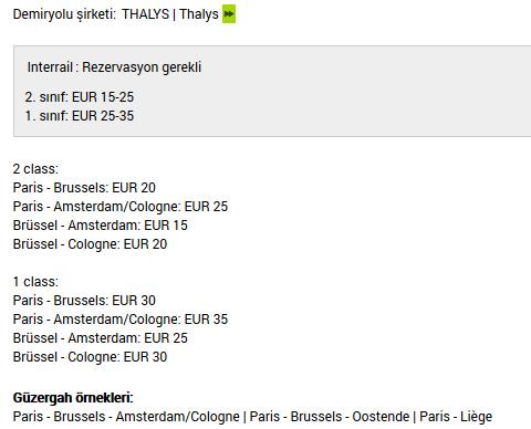 Paris-Brüksel interrail rezervasyonsuz trenParis-Brüksel interrail rezervasyonlu tren