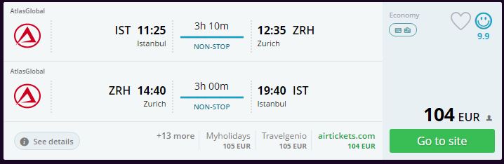 Bu uçak bileti kampanyasında da iki tane İsviçre şehri, Cenevre ve Zürih'e ucuz bilet bulunabiliyor.