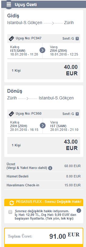 Zürih uçak bileti pegasus