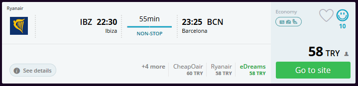 Ryanair'in uçuş fırsatı ile Ibiza'ya ucuza gidebilirsiniz. Bilet Fiyatı: 60 TLMadrid ibiza uçak bileti