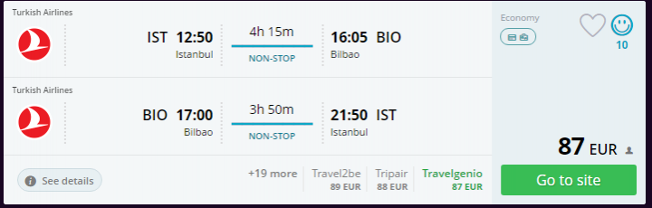 Bu bileti ben de alacağım çünkü İspanya'ya, hem de Bilbao'ya bu fiyata uçak bileti bulmak imkansız.