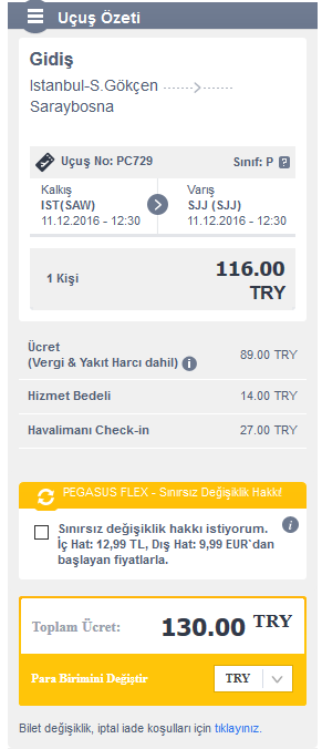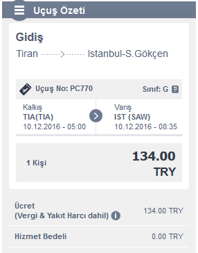 Bu arada bu uçuş için hizmet bedeli'ni almıyor. Sistemsel bir hata olsa gerek.