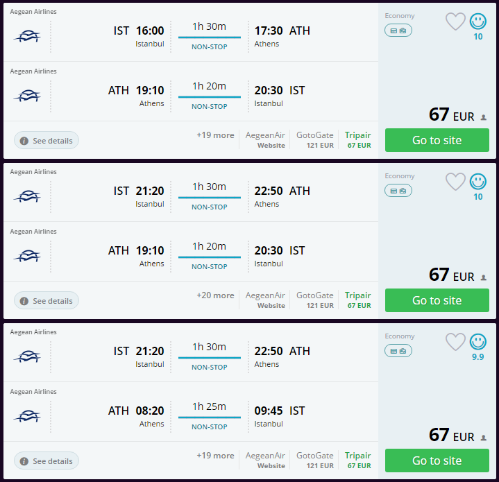 Yunanistan'ın başkenti Atina'ya güzel fiyatlarla uçak bileti almak mümkün. Genelde gidişler ucuz, dönüşler pahalı olur ama bu kez gidiş-geliş 67 Euro gibi güzel bir rakama Atina'ya Ucuz Uçak Bileti var.