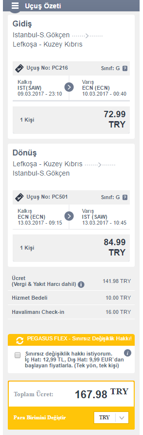 Verdiğim uçak biletleri Pegasus'un kendi sitesinde en ucuz, bileti oradan almalısınız.