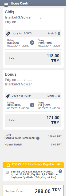Priştine için uçak biletini en uyguna Pegasus kendi sitesinde satıyor.