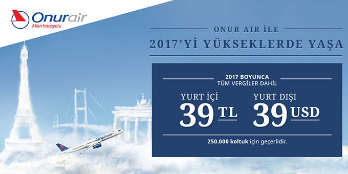 Kampanya dahilindeki ucuz uçuşları bulmak için http://www.onurair.com/tr/kurumsal/haberLP/Onur-Air-ile-2017yi-Yukseklerde-Yasa/18/1229/0 adresine gidin,