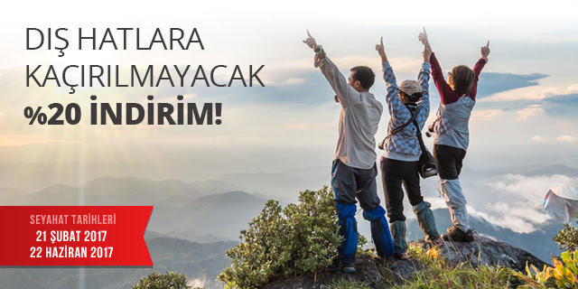 İndirim 20 Ocak 2017 ile 22 Ocak 2017 tarihleri arasında alınacak biletlerde geçerli