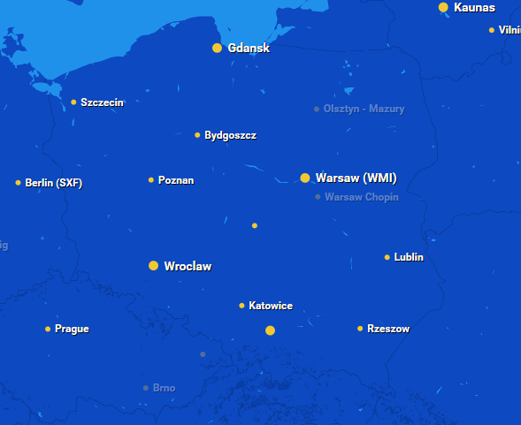 Ryanair Polonya'da tam 13 noktadan uçuş yapmaktadır. Aşağıdaki görselden de bunu görebilirsiniz.