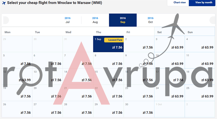 Aşağıda göreceğiniz üzere 5 TL vererek (Yaklaşın 8 PLN, Polonya Zlotisi) uçağa binebilirsiniz! Özellikle Polonya içinde çok komik rakamlara bilet bulabilirsiniz.Wroclaw-Varşova 5 TL