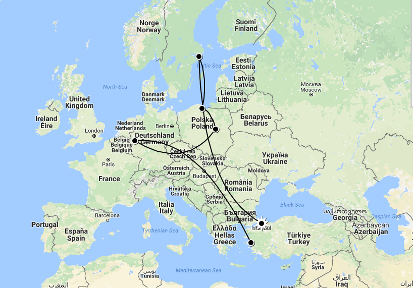 Stokholm-Gdansk-Varşova-Köln Toplamda 249 TL