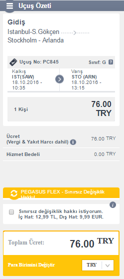Başlangıç İstanbul'dan, Pegasus Hava Yolları ile Stokholm'e. Bu bileti en ucuz Pegasus'un kendi sitesinden alabiliyorsunuz. Bilet Fiyatı: 76 TL