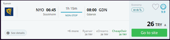 Gdansk ve Varşova arasında da ulaşım yine uçakla, Ryanair şirketiyle. Bilet Fiyatı: 30 TL