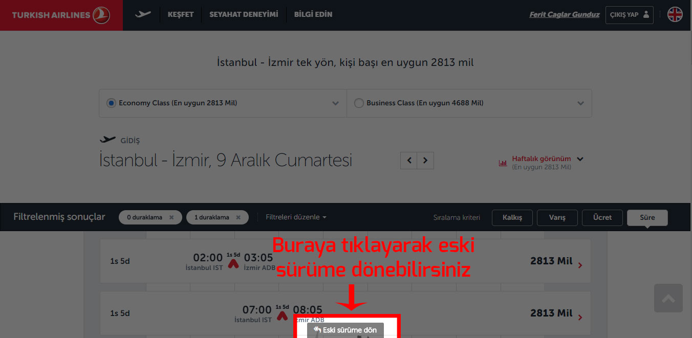 ÖNEMLİ NOT: TÜRK HAVA YOLLARI SİSTEMİNİ DEĞİŞTİRİYOR, AMA HALA BURADAKİ ANLATIM SORUNSUZ BİR ŞEKİLDE İŞLİYOR. TEK YAPMANIZ GEREKEN EKRANDAN ESKİ SÜRÜME DÖN DEMENİZ.
