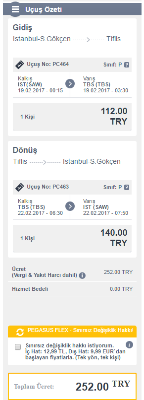 Uçak biletini Pegasus'un kendi web sitesinden almanız gerekiyor, en ucuz burada satılıyor.