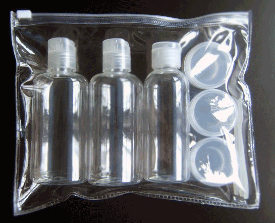 Uçağın içine alacağınız sıvılar muhakkak maksimum 100 mililitrelik,ağzı kapalı ve sağlam paketlerde olmalıdır. Birçok kozmetik markette (Watsons, Gratis vb.) bunları kolaylıkla bulabilirsiniz. Fiyatları da gayet makul, 5-10 TL bandında, 3 adet 100 ml şişeler ve ağzı kilitli şeffaf çantalar satılıyor. Hatta kadınlar için makyaj malzemelerini de koyabilecekleri çantalar satılıyor. Aşağıdaki görsel de bunlardan birine örnek.