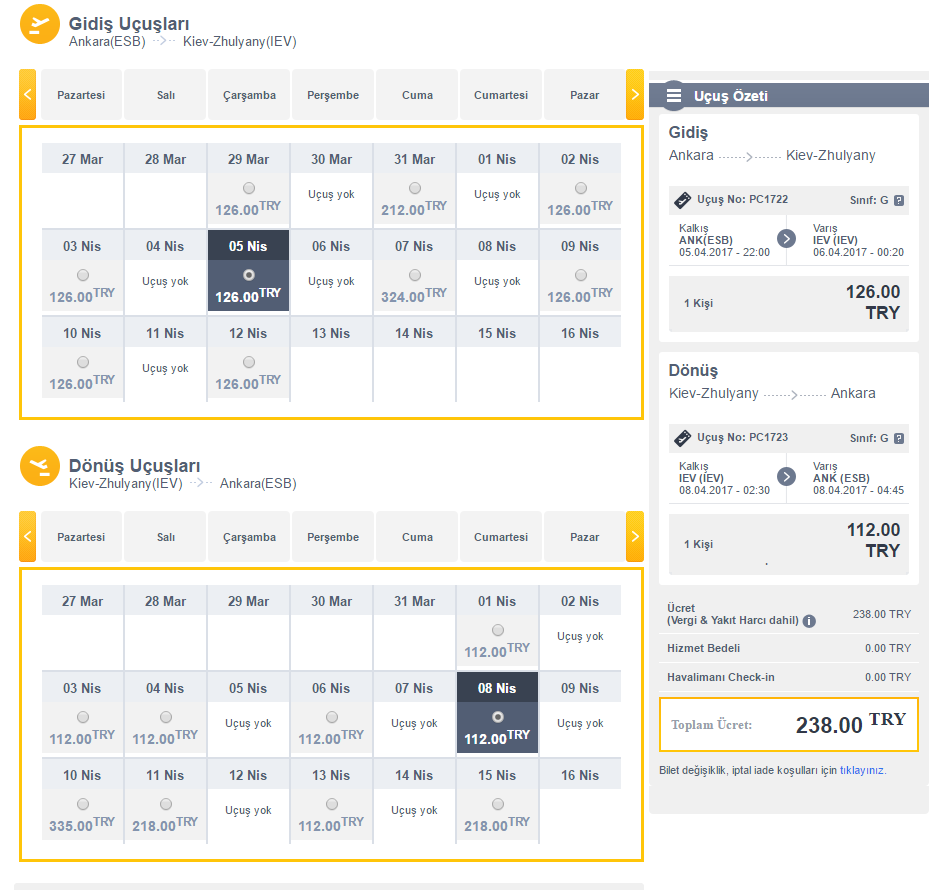 Mart, Nisan ve Mayıs ayında da yine uçuşlar bulunuyor. Pegasus'un sitesine gidip 15 günlük görünüm derseniz hepsine ulaşabilirsiniz.
