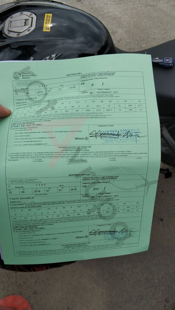 Yurtdışına araçla çıkarken mutlaka Yeşil Sigorta yaptırmalısınız. Öncelikle Avrupa ülkeleri olmak üzere Bulgaristan'dan İzlanda'ya kadar 46 ülkede geçerli olan bu sigorta olmadan araçla yurtdışına çıkamazsınız. Tüm sigorta şirketleri de Yeşil Sigorta'yı yapabiliyor. Yurtdışına motosiklet ile çıkmak için İpsala sınır kapısındaki TURİNG ofisinden yaptırdım. Haziran 2019'da 15 günlük Yeşil Sigorta için kredi kartımla ödediğim ücret: 37,80 Euro.